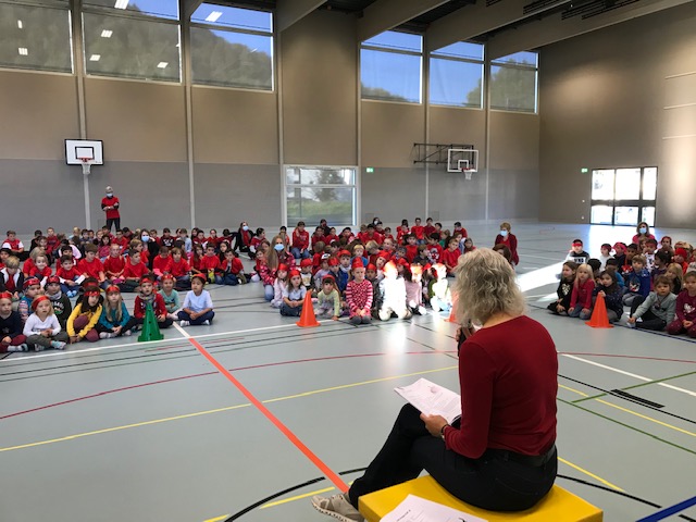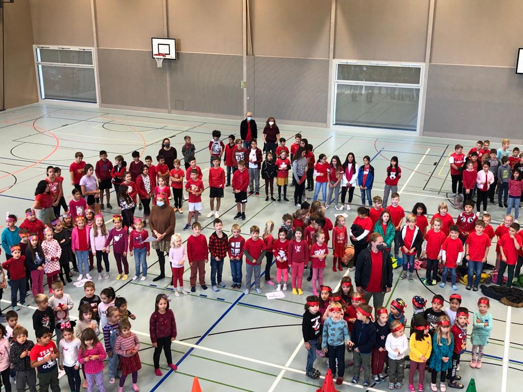 „Alle Kinder der Schule haben sich in der Turnhalle getroffen. Jeder hatte etwas Rotes an.