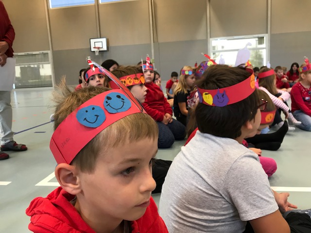 Wir haben das Chililied „mir sind e Schuel“ gesungen. Dann hat uns Frau Burgener die Geschichte vom kleinen Prinz und dem Fuchs erzählt. Es ging dabei um wahre Freunde.