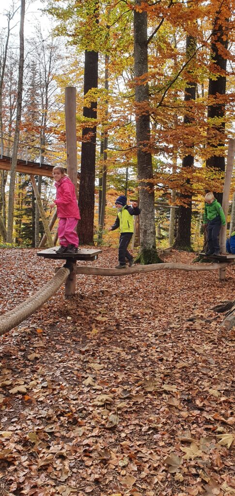 «Die Seilbahn auf dem Spielplatz hat Spass gemacht.»«Auf dem Spielplatz hat es eine lange Kugelbahn.»