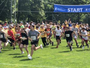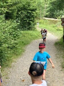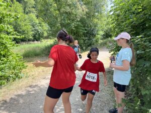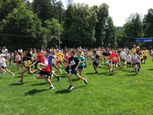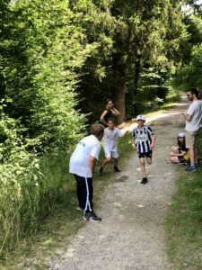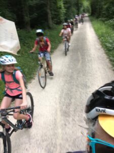 „Am Dienstagmorgen machten wir uns um 11 Uhr bereit für die Tössstafette. Die meisten hatten null Motivation, um rennen zu gehen, aber wir mussten natürlich mit. Wir fuhren mit dem Velo zum Reitplatz in Winterthur und stellten unsere Velos zu den 1000 anderen Velos. wir gingen auf den Platz und aßen Mittagessen. Während dem Mittagessen bekamen wir unsere Startnummer, die zwischen 4000 und 6000 lag. Später bekamen die ersten die rennen noch einen Stafettenchlip (das gelbe Band). Sobald wir an der Reihe waren, joggten wir los und gaben unser bestes, doch es reichte nicht für den ersten Platz aus.“