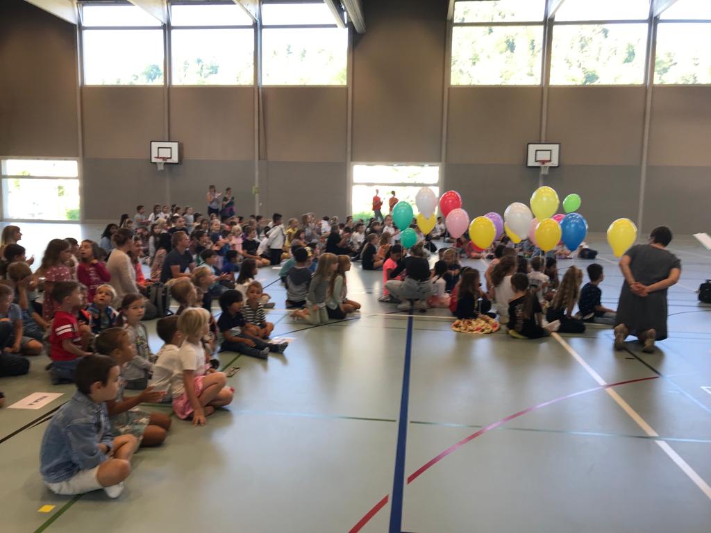 Für alle heisst es wieder: Schulthek packen und wieder nach Stundenplan arbeiten. Für die 1. Klässler war es ein ganz besonderer Tag. Sie wurden von den 4. Klässlern auf der Primarstufe begrüsst. Der Ballon, den sie erhielten, sollte gemäss der Schulleiterin Frau Burgener die frischgebackenen Primarstüfler zu Höhenflüge schulischer Natur beflügeln. In diesem Sinn: Leinen los für’s neue Schuljahr.